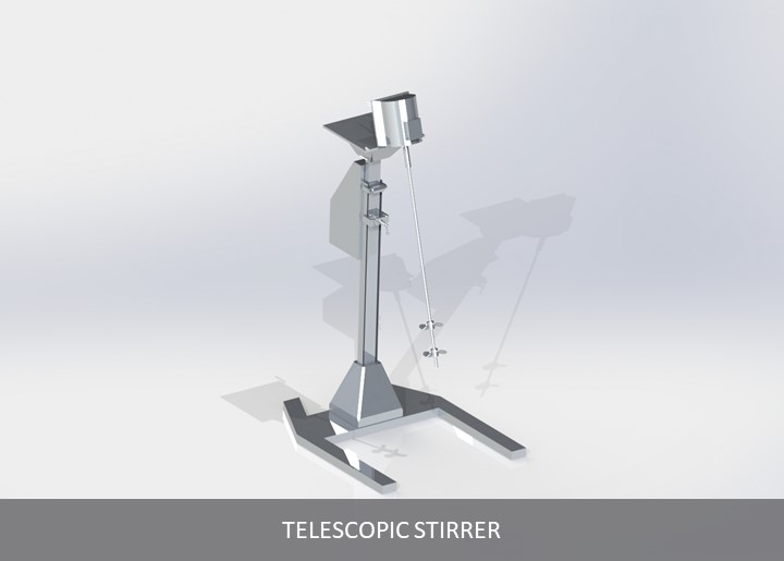 “Swiss”STIRRER is suitable to mix syrups and liquids, the stirring shaft and propeller are made out of S.S 316 quality and shaft is directly connected to motor. The motor can also be fitted on stand. Generally the unit is mounted on a stand with base height adjustable up to 12′-0″ up and dowen.All contact parts made out of S.S. 316 quality and stand cladded with S.S. 304 quality, 18 Gauge sheet. Stainless Steel parts are polished as matt finish by 120 grit.